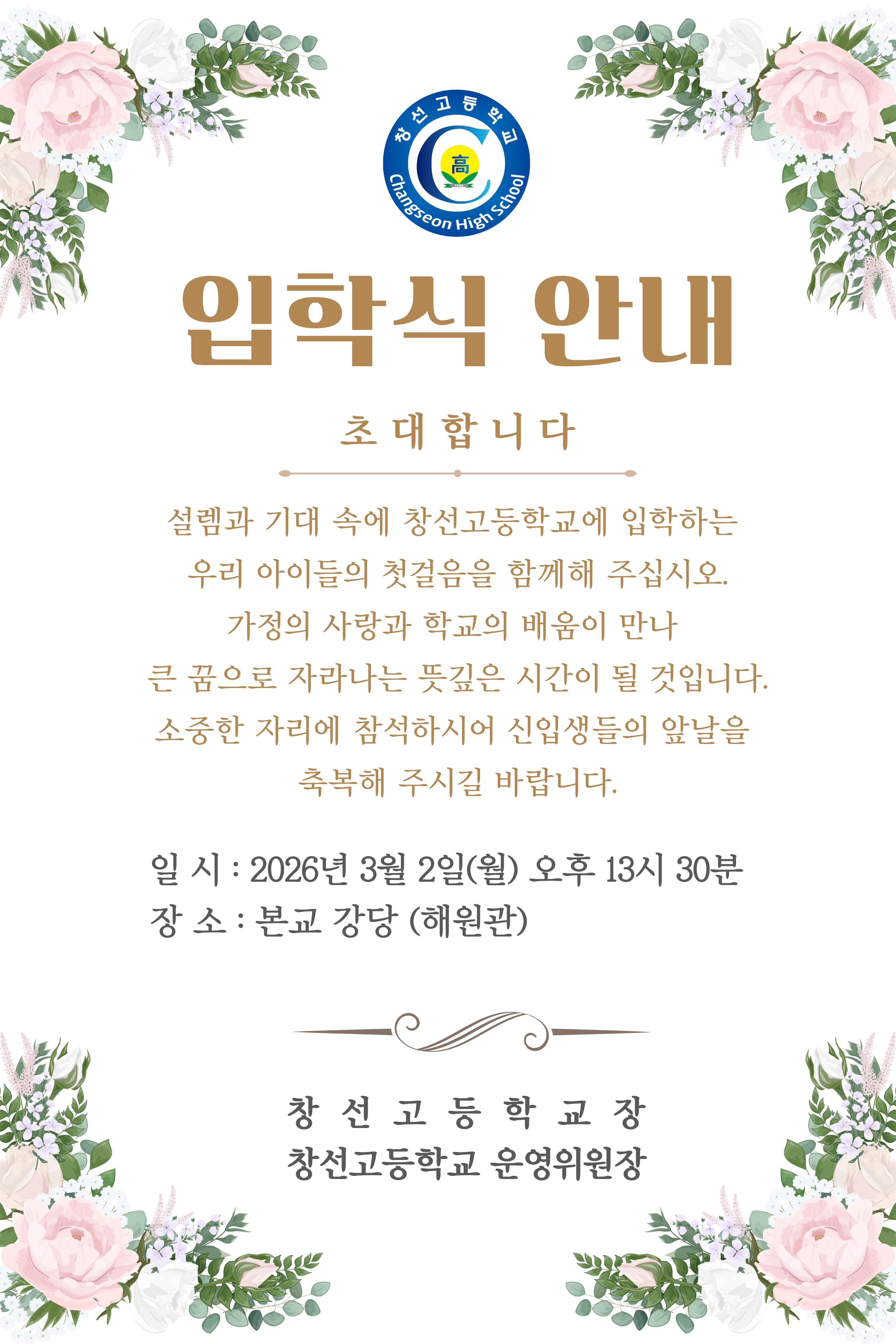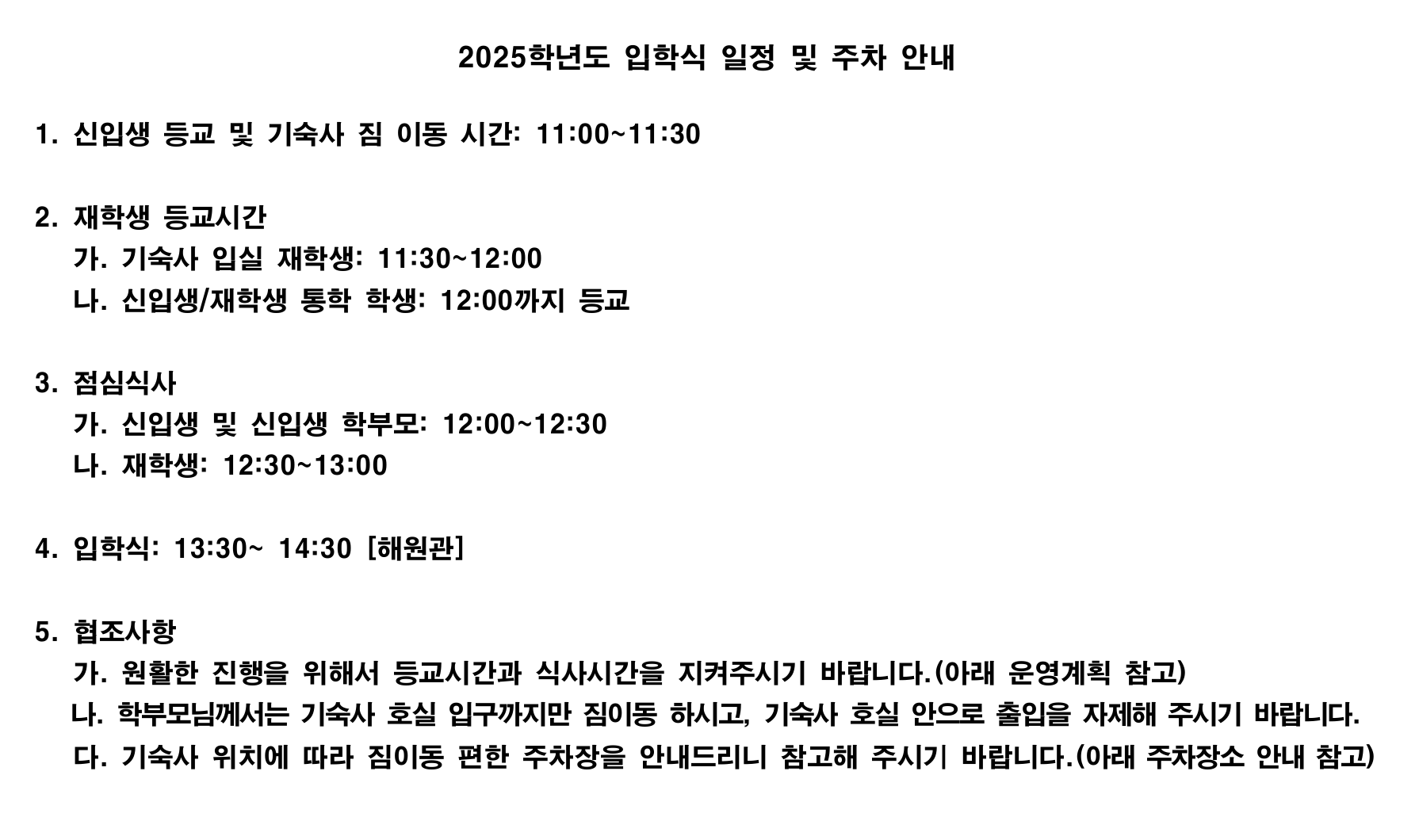 2026학년도 입학식 안내(세부일정 및 주차안내)